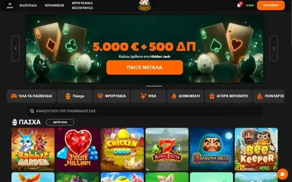 Καλώς ήρθατε στο HiddenJack Casino, σχεδιασμένο για Έλληνες παίκτες που θέλουν καθαρό λόμπι, πολλούς τύπους παιχνιδιών και απλό τραπεζικό σύστημα σε EUR. Η υπόσχεσή μας σε μία πρόταση είναι η εξής: κρατάμε τις επιλογές σας πολλές, ενώ οι κανόνες παραμένουν εύκολοι να βρεθούν και να κατανοηθούν. Στο Hidden Jack, μπορείτε να μεταβαίνετε από κουλοχέρηδες σε ζωντανά τραπέζια με λίγα πατήματα, χωρίς να χάνετε τη θέση σας. Αν συγκρίνετε επιλογές καζίνο , εστιάζουμε σε πρακτικές λεπτομέρειες όπως φίλτρα παιχνιδιών, γρήγορες καταθέσεις και ένα πρόγραμμα επιβράβευσης που μπορείτε να παρακολουθείτε.