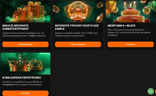 | Κορυφαίοι συνεργάτες λογισμικού | NetEnt, Pragmatic Play, Play'n GO, Evolution Gaming, Games Global, Red Tiger Gaming |
